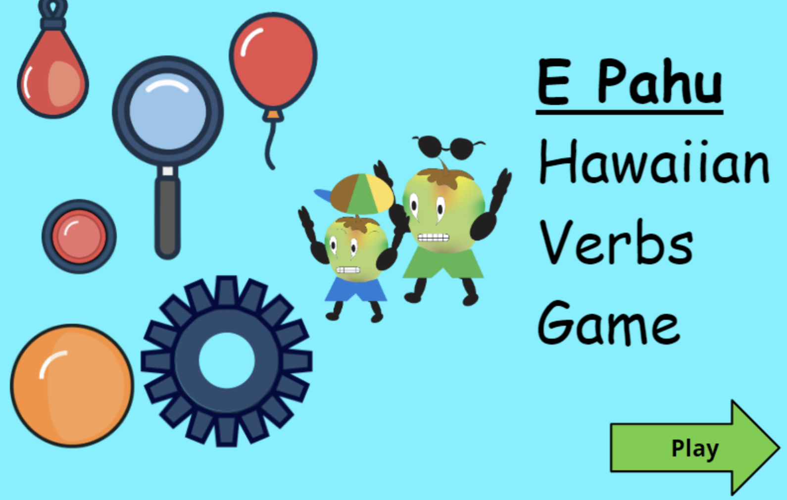 Learn Hawaiian verbs by testing your speed and listening skills. Before the clock hits 0, Select one of the 9 objects to move and represents the correct Hawaiian verb said in the audio. Rack up points and WIN the game without making a mistake.
